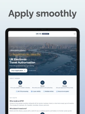Komitmen ETA UK Assistant terhadap pengalaman pengguna yang unggul tercermin dalam reka bentuk antara muka yang intuitif, membolehkan navigasi yang mudah dan efisien. Sistem sokongan permohonan kami direka untuk pemprosesan yang pantas dan cekap, menjamin kebolehpercayaan dan keselamatan data peribadi anda. Manfaatkan ETA yang sah untuk pelbagai lawatan dalam tempoh dua tahun, memberikan fleksibiliti maksimum untuk pelawat kerap dan mereka yang dalam perjalanan perniagaan. Segala maklumat terkini mengenai syarat perjalanan UK juga tersedia di hujung jari anda, disokong oleh pasukan sokongan yang mudah dihubungi terus melalui aplikasi untuk sebarang bantuan yang diperlukan.