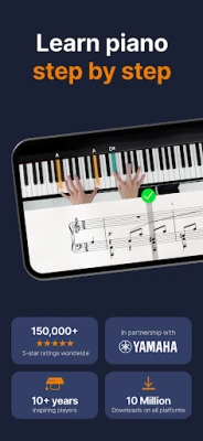 Impian menguasai piano kini berada di hujung jari anda dengan flowkey. Selami lautan melodi yang mempesonakan, merangkumi ribuan gubahan piano dari pelbagai genre seperti Klasik, Pop, Filem & TV dan banyak lagi. Sama ada anda baru bermula atau seorang pemain berpengalaman, flowkey menawarkan empat tahap kesukaran untuk memastikan anda sentiasa menemui cabaran baharu. Pemula boleh mengikuti kursus langkah demi langkah yang komprehensif, dari membaca notasi muzik dan navigasi papan kekunci, sehinggalah menguasai permainan dua tangan. Manakala pemain piano yang mahir pula boleh mengasah kemahiran mereka melalui tutorial mendalam mengenai skala, kord, dan improvisasi, semuanya dengan hanya menggunakan aplikasi flowkey, peranti anda (telefon, tablet atau komputer riba) dan instrumen piano akustik, digital atau papan kekunci.