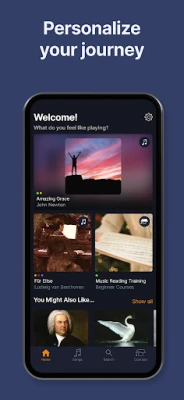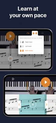flowkey mengubah latihan piano menjadi pengalaman yang interaktif dan menyeronokkan, memberikan maklum balas segera untuk setiap sentuhan not anda. Gunakan ciri "Loop" untuk mengulang bahagian sukar sehingga sempurna, atau "Select a Hand" untuk berlatih tangan kanan dan kiri secara berasingan. Dengan "Wait Mode", aplikasi ini akan menunggu anda menekan not dan kord yang betul, sama ada melalui mikrofon peranti anda atau sambungan Bluetooth/MIDI. Visualisasi adalah kunci; ciri "Video" membolehkan anda menonton pemain profesional membuat persembahan, dengan not yang disorot pada papan kekunci dan panduan penempatan jari. Bagi mereka yang ingin menikmati muzik tanpa henti, "Just Play" akan mengiringi persembahan anda, malah jika anda terlepas beberapa not, dan dengan "Full Sheet Music View", anda boleh berlatih membaca lembaran muzik tradisional dalam mod potret.