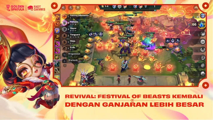 Selami aksi bersama rakan-rakan dalam mod Team-Up yang mendebarkan, di mana anda boleh melonjak dalam kedudukan bersama dan berkongsi setiap kejayaan dan cabaran. Pengalaman koperasi ini menjanjikan permainan yang adil dan semangat positif sepanjang masa, tanpa perkongsian unit atau item. Jangan ketinggalan 'Revival: Festival of Beasts' yang kembali pada 5 Februari, membawakan semula juara dan Trait yang digemari, diserikan dengan Sinergi Fortune yang memperkenalkan semula Hujan Angpau untuk ganjaran mengejut dalam setiap perlawanan. Kumpul syiling penebusan dan buka Little Legends serta Boom secara percuma untuk mengukuhkan koleksi anda!