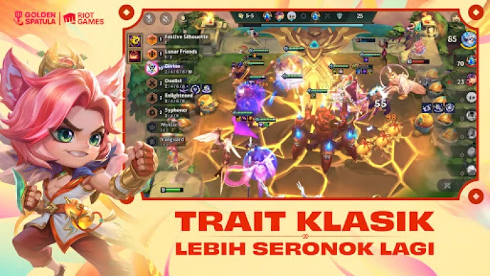 Terokai potensi strategik tanpa had dengan 16 juara Lunar Revel yang boleh dibuka; pembantu khas ini bergabung dengan pertempuran tanpa mengambil slot pasukan utama, membolehkan anda bereksperimen dengan susunan yang lebih kreatif dan berani. Tingkatkan permainan anda dengan Trait klasik kegemaran peminat seperti Blood Moon, Warlord, dan Divine, kini diperkuat ke tahap Prismatik. Bina pasukan yang sangat berkuasa, seru unit yang hebat, dan saksikan kesan visual yang memukau yang menghidupkan medan perang anda. Pasukan Golden Spatula komited untuk pengalaman permainan yang sentiasa berkembang, dengan kemas kini berkala dan maklum balas pemain yang memastikan perjalanan strategik anda sentiasa segar dan menarik.
