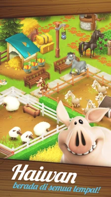 Selamat datang ke dunia perladangan yang menenangkan dan bermanfaat dalam Hay Day! Di sini, anda berpeluang membina ladang impian anda sendiri, bermula dengan hanya sebidang tanah kecil. Tanam pelbagai jenis tanaman seperti gandum dan jagung, dan saksikan ia tumbuh subur tanpa perlu risau tentang layu. Nikmati kepuasan menuai hasil bumi anda, kemudian gunakan ia untuk menghasilkan pelbagai barangan atau tanam semula untuk menggandakan keuntungan. Apabila ladang anda berkembang, sambutlah haiwan ternakan yang comel seperti ayam, khinzir, dan lembu. Beri mereka makan dengan penuh kasih sayang untuk mendapatkan telur segar, bakon lazat, produk tenusu, dan banyak lagi sumber berharga.