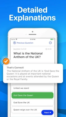 Bersedia untuk Ujian Kewarganegaraan UK. Aplikasi ini membantu anda kuasai nilai, sejarah, tradisi, dan kehidupan seharian British yang penting. Fahami semua topik kritikal untuk naturalisasi sebagai warganegara British.