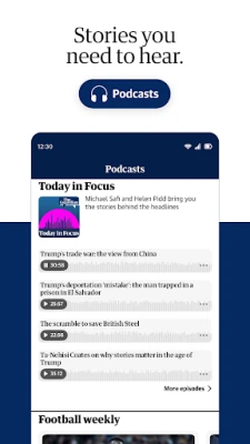 Alami berita secara hands-free dengan tab podcast khusus kami, menampilkan semua podcast The Guardian yang memenangi anugerah. Pemain audio dalam aplikasi yang serba baharu memudahkan penemuan dan pendengaran. Selain itu, manfaatkan kemudahan teks-ke-ucapan yang dipertingkatkan untuk mendengar setiap artikel dengan selesa, sesuai untuk gaya hidup anda yang sibuk. Apabila tiba masanya untuk berehat, selami Pusat Teka-teki Guardian kami, menawarkan permainan kegemaran ramai seperti On the ball, Film reveal, Wordwheel, Wordiply dan Sudoku untuk menceriakan waktu lapang anda.