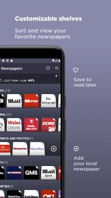 Pengalaman membaca anda kini lebih dipertingkatkan dengan pelbagai ciri baharu yang direka untuk kemudahan dan penyesuaian anda. Aktifkan MOD GELAP untuk bacaan yang selesa pada waktu malam atau dalam persekitaran cahaya malap. Tambahkan akhbar kegemaran anda ke "wishlist" anda dalam mana-mana rak untuk akses pantas. Tandakan artikel penting sebagai kegemaran untuk dibaca semula pada bila-bila masa. Susun semula akhbar atau rak mengikut kehendak anda hanya dengan menekan dan menahannya. Untuk fleksibiliti tambahan, anda kini boleh membuka mana-mana akhbar dalam pelayar luaran. UK Newspapers dengan tegas mengiktiraf bahawa logo dan kandungan setiap akhbar atau majalah adalah hak milik eksklusif pemilik masing-masing, dan ia digunakan semata-mata untuk tujuan pengenalan oleh pembaca aplikasi dan untuk memudahkan akses ke laman web setiap penerbitan.