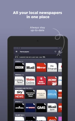 Pilihan kandungan yang luas menanti, meliputi setiap aspek kehidupan UK. Terokai permata serantau yang penting seperti Manchester Evening News atau Wales Online dalam kategori "Regional". Untuk pandangan kewangan dan politik yang mendalam, anda boleh mendapatkan berita terkini dari Sky News atau International Business Times. Peminat sukan tidak akan ketinggalan aksi dengan liputan dari Sportbible dan Sky Sport. Dan bagi mereka yang sentiasa ingin tahu tentang trend terkini, majalah fesyen seperti Dailyfeed, Digital Spy, dan Vogue tersedia untuk memastikan anda sentiasa terkini dengan gaya dan kisah selebriti. Tambahan pula, setiap bahagian menawarkan pelbagai akhbar lain untuk penerokaan anda.