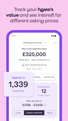 Zoopla membantu anda mencari hartanah untuk dijual dan disewa di seluruh UK. Selain pencarian rumah, aplikasi ini turut menyediakan alat penilaian berdasarkan data untuk memahami nilai rumah anda dan membimbing keputusan perpindahan.