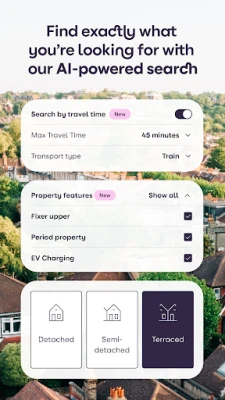Mengimpikan kediaman idaman di United Kingdom? Zoopla mengubah cara anda mencari, membeli, menyewa, dan menjual hartanah dengan pengalaman yang lancar dan intuitif. Terokai senarai yang tidak terkira banyaknya dengan melukis kawasan carian terus pada peta, menentukan lokasi pilihan, atau hanya menggunakan kedudukan semasa anda. Penapis pintar membolehkan anda mencari rumah yang sesuai dengan setiap kriteria – dari binaan baharu yang moden dan hartanah yang memerlukan pengubahsuaian, hinggalah rumah dengan taman, kemudahan parkir, pengecas kenderaan elektrik, atau ciri-ciri bersejarah seperti kotej dan kediaman zaman dahulu. Anda juga boleh mencari mengikut masa perjalanan yang diinginkan ke tempat kerja, keluarga, atau rakan-rakan.